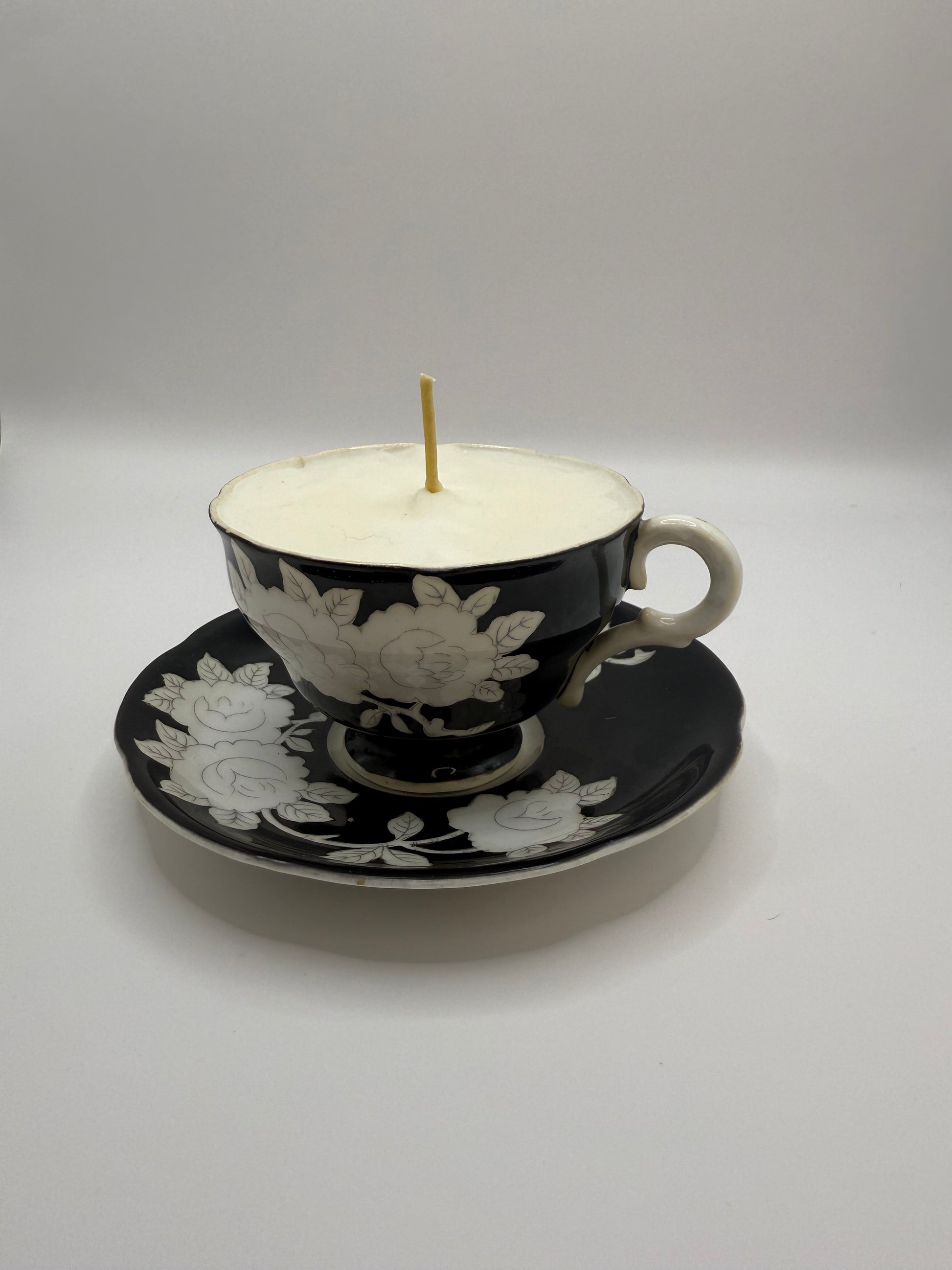 Black & White Floral Teacup Candle